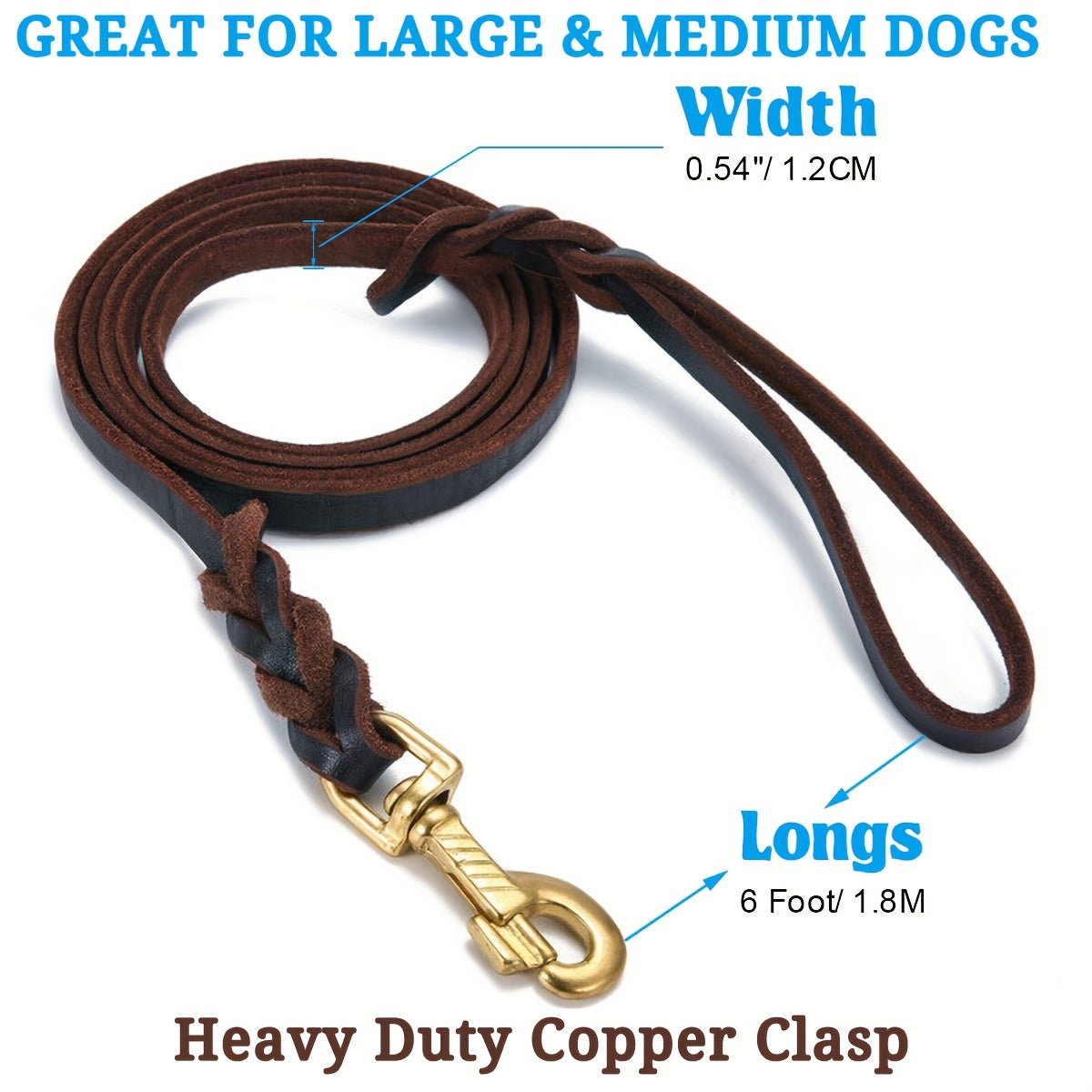 6ft Valódi Fonott Bőrpóráz – Erős, kényelmes és elegáns választás nagytestű kutyáknak