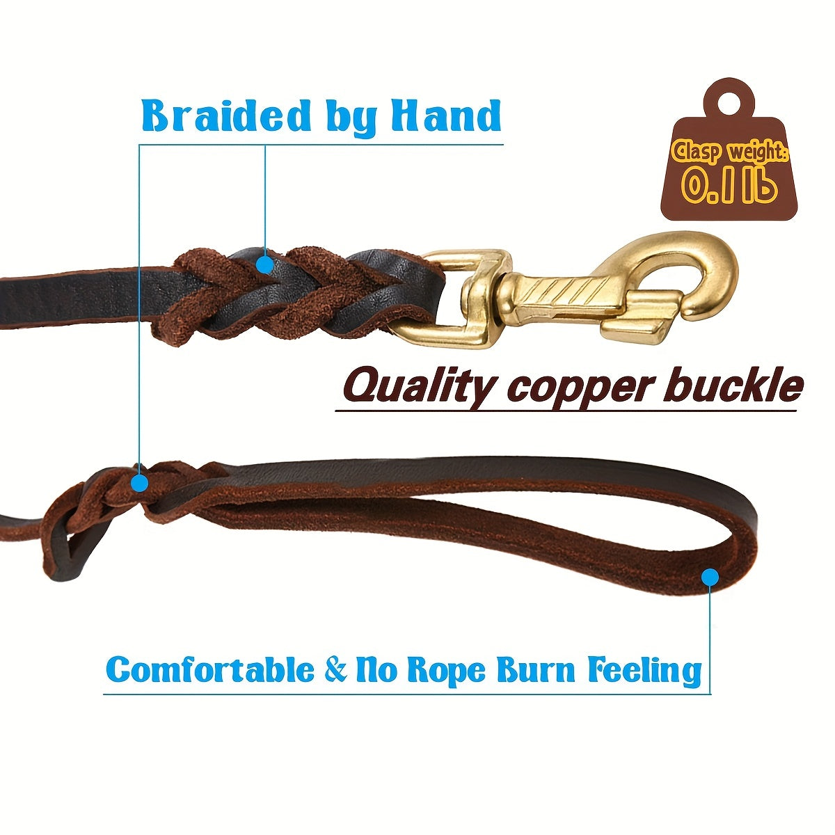 Ez a prémium bőrpóráz minden részletében a minőséget képviseli. Ideális választás nagytestű kutyák számára, legyen szó sétáról, tréningről vagy mindennapi használatról. A fonott bőr és a réz karabiner kombinációja nem csak elegáns megjelenést, de hosszú élettartamot is biztosít.
