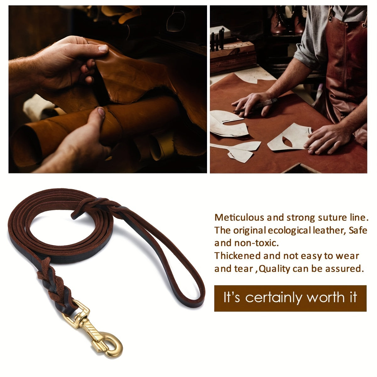 1,8 m (6ft) Valódi Fonott Bőrpóráz – Erős, kényelmes és elegáns választás nagytestű kutyáknak